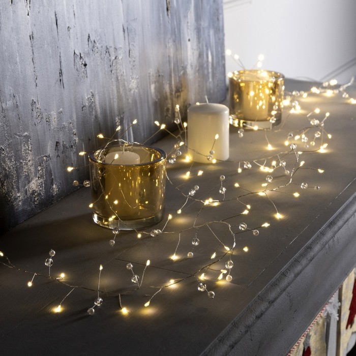 Гирлянда «Мишура» 2 м роса с насадками «Шарики», IP20, серебристая нить, 100 LED, свечение тёплое белое, ААх3