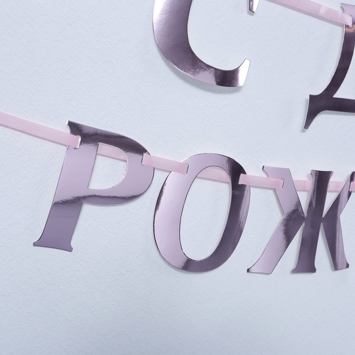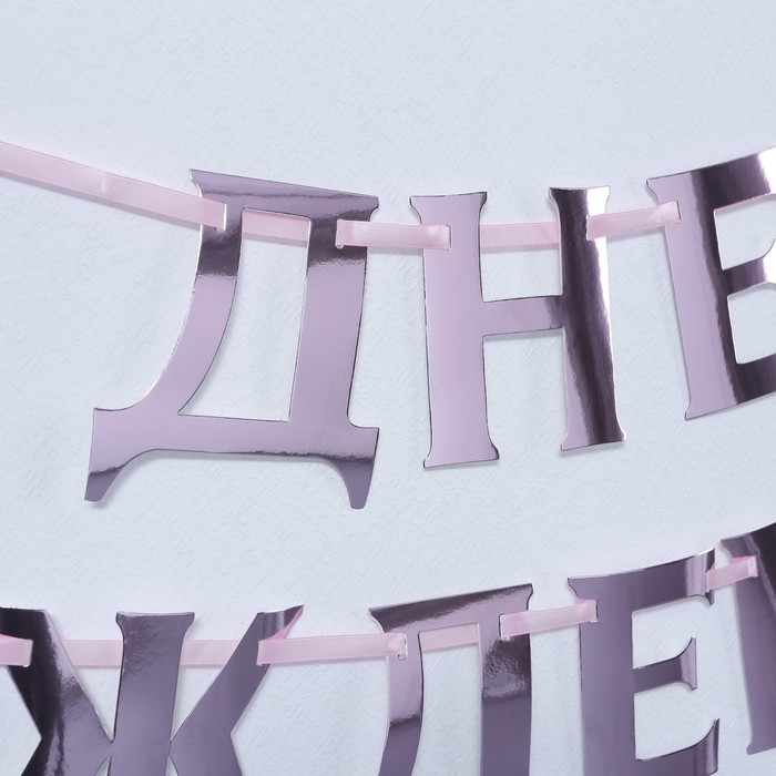 Гирлянда на ленте, металлик «С ДР» розовый, длина 140 см