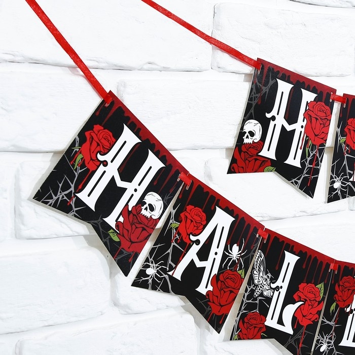 Гирлянда на ленте на Хэллоуин «Happy Halloween», розы, дллина 250 см.