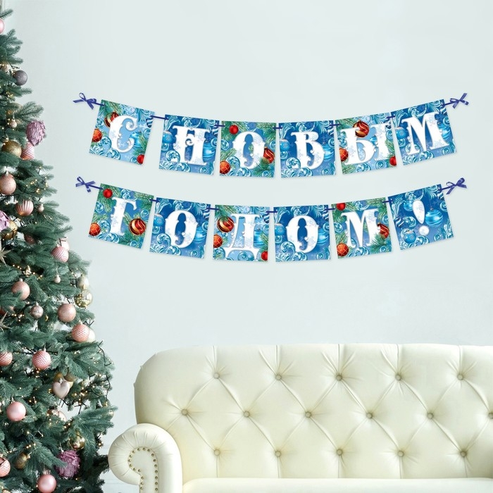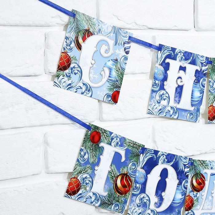Гирлянда на ленте новогодняя «С Новым годом!», на Новый год, иней, длина 2 м.