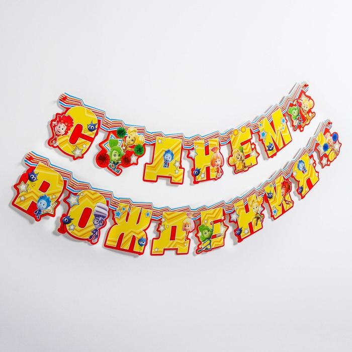 Гирлянда на люверсах "С Днем рождения!", длина 218 см, Фиксики