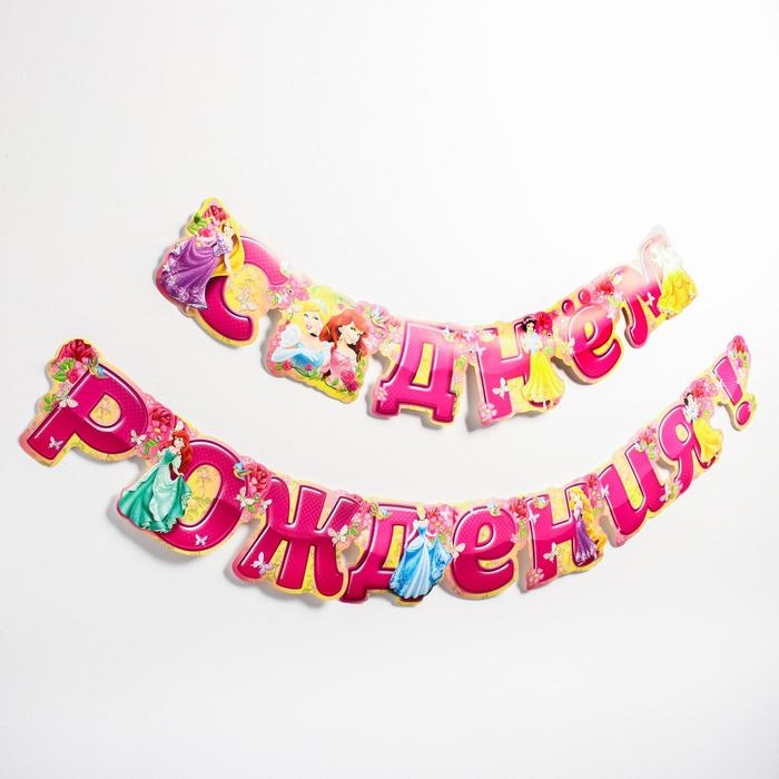 Гирлянда на люверсах "С Днем Рождения!", длина 219 см, Принцессы