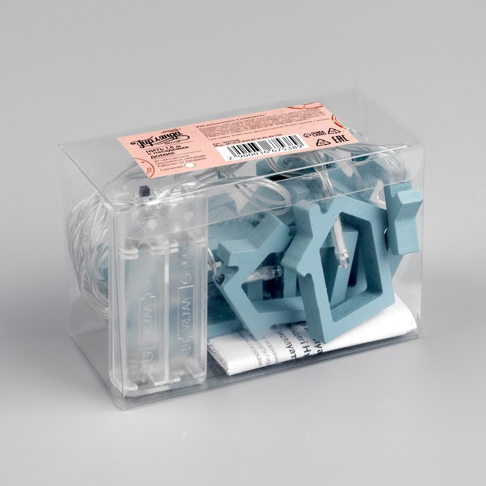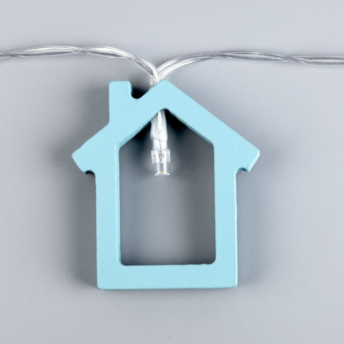 Гирлянда «Нить» 1.5 м с насадками «Дом синий», IP20, прозрачная нить, 10 LED, батарейки AAх2 (нет в комплекте), свечение тёплое белое