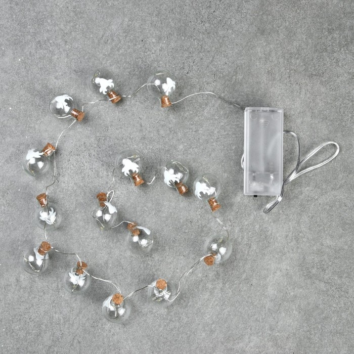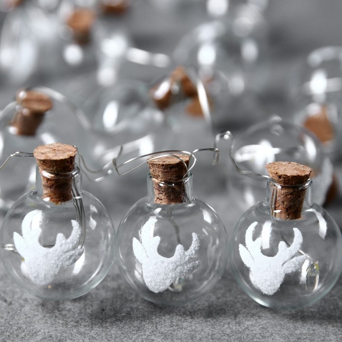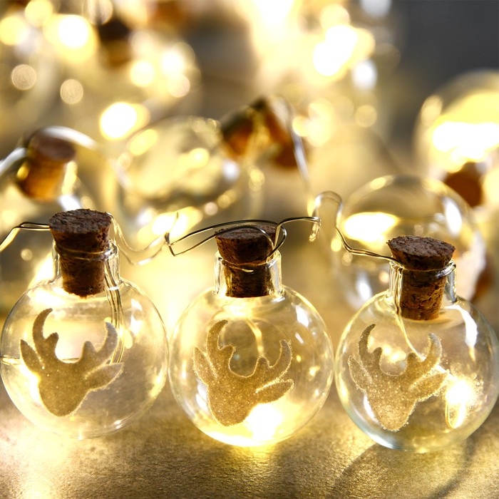 Гирлянда «Нить» 1.6 м с насадками «Шарики с оленем», IP20, серебристая нить, 15 LED, свечение тёплое белое, ААх2
