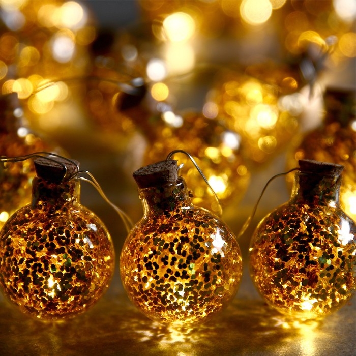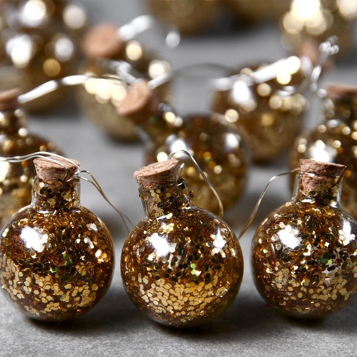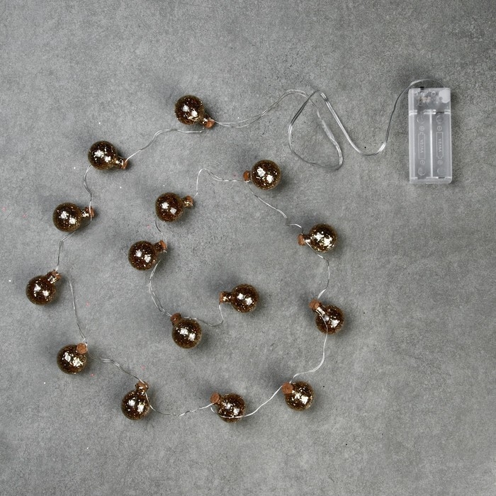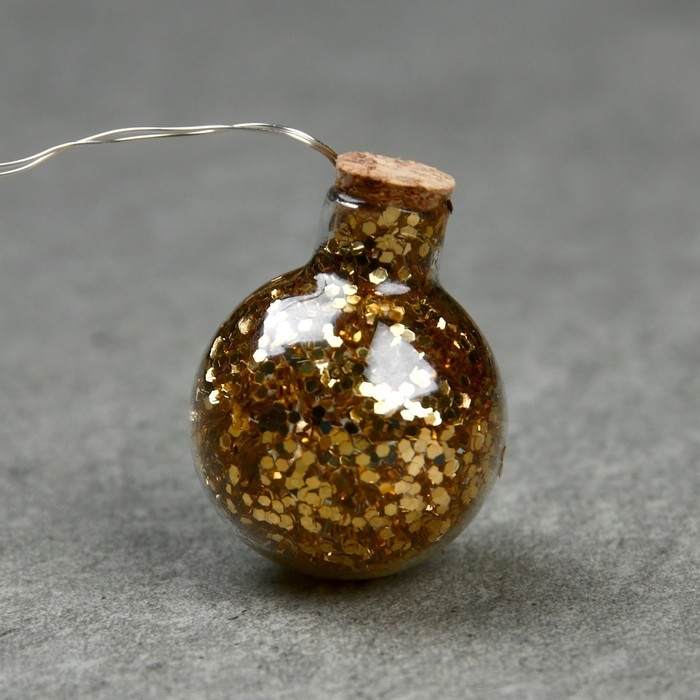 Гирлянда «Нить» 1.6 м с насадками «Шарики с золотистым конфетти», IP20, серебристая нить, 15 LED, батарейки ААх2 (нет в комплекте), свечение тёплое белое