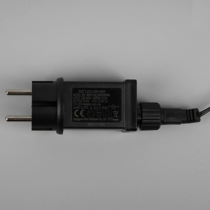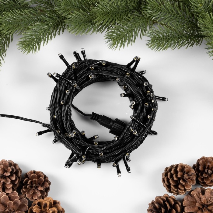 Гирлянда «Нить» 10 м, IP44, УМС, тёмная нить, 100 LED, свечение тёплое белое, мерцание всех светодиодов, 24 В