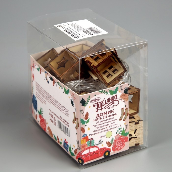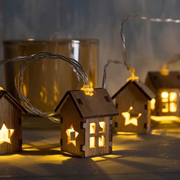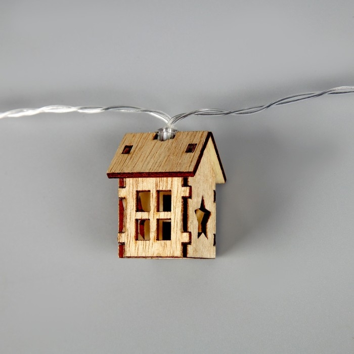 Гирлянда «Нить» 2.5 м с насадками «Домик», IP20, прозрачная нить, 10 LED, батарейки AAх2 (нет в комплекте), свечение тёплое белое