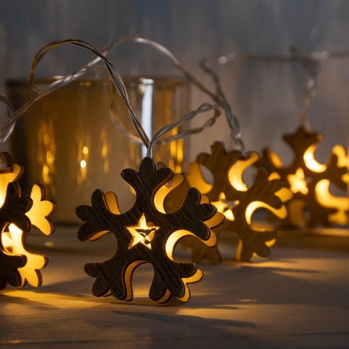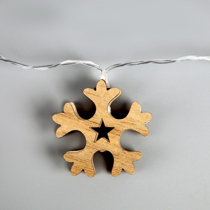 Гирлянда «Нить» 2.5 м с насадками «Снежинка», IP20, прозрачная нить, 10 LED, батарейки AAх2 (нет в комплекте), свечение тёплое белое