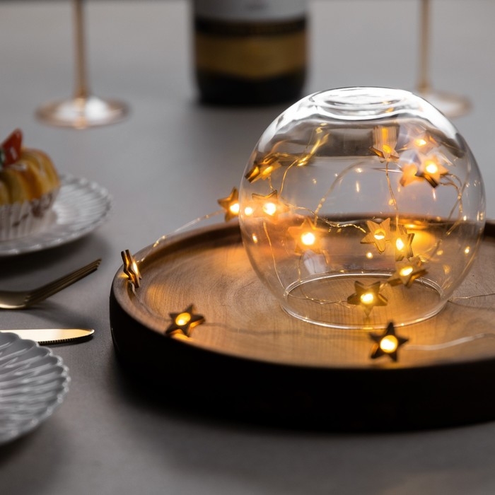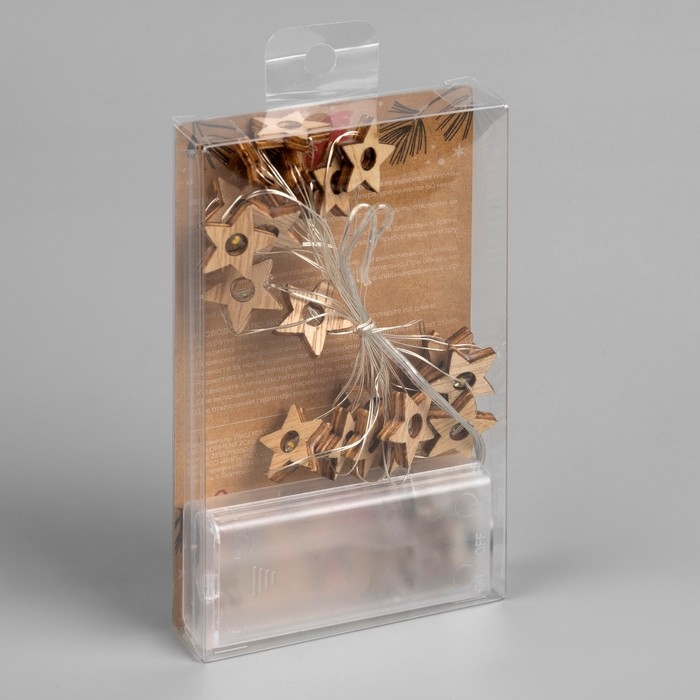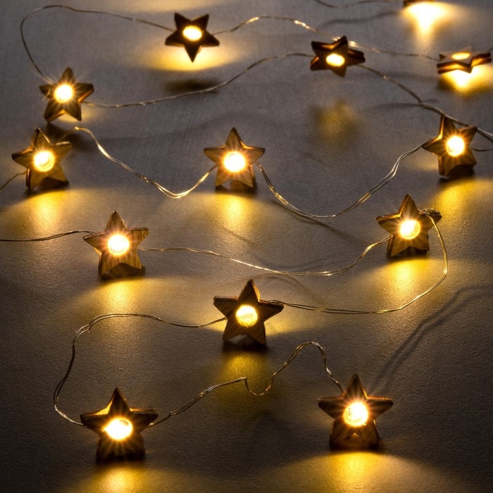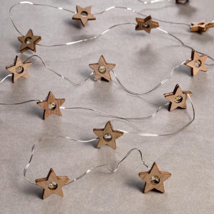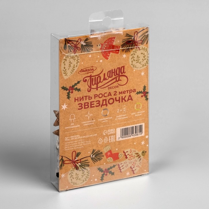 Гирлянда «Нить» 2 м роса с насадками «Звёздочка», IP20, серебристая нить, 20 LED, батарейки ААх2 (нет в комплекте), свечение тёплое белое
