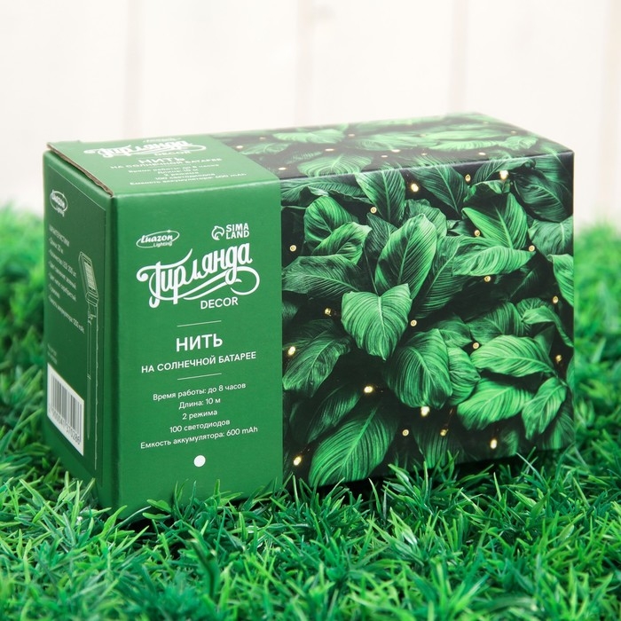 Гирлянда «Нить» 10 м, IP44, тёмная нить, 100 LED, свечение мульти, 2 режима, солнечная батарея