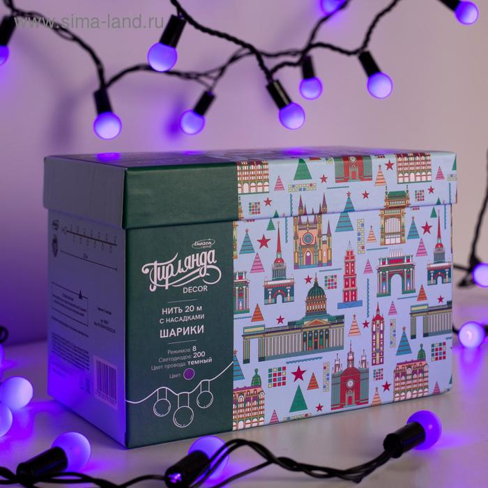 Гирлянда «Нить» 20 м с насадками «Шарики 1.5 см», IP44, тёмная нить, 200 LED, свечение фиолетовое, 8 режимов, 220 В