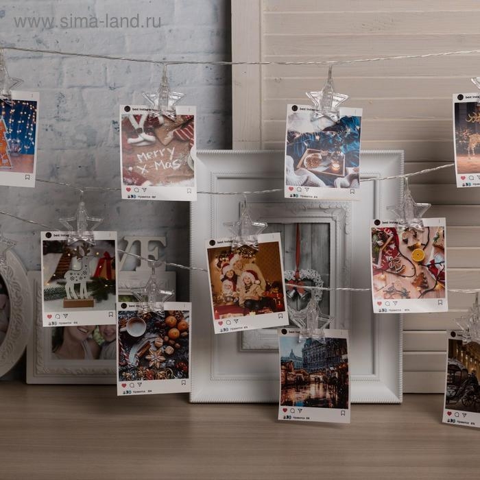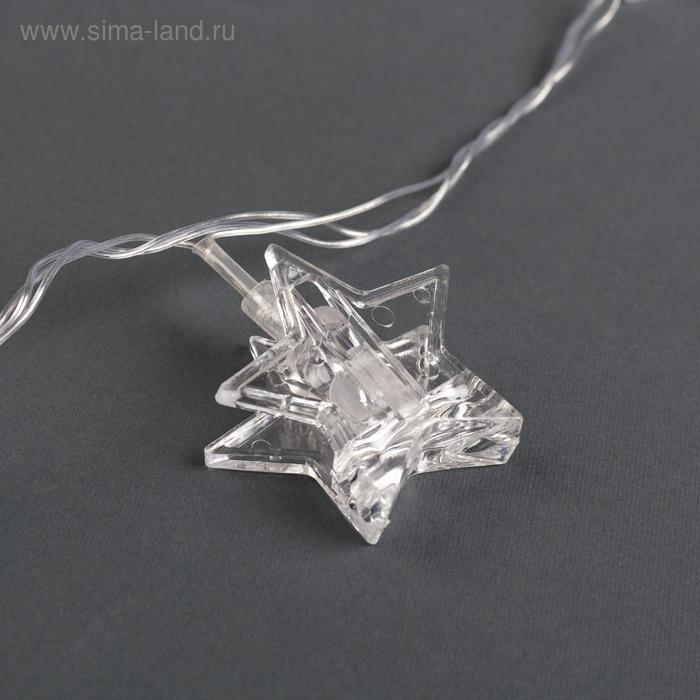 Гирлянда «Нить» 4.5 м с насадками «Прищепки-звёзды», IP20, прозрачная нить, 20 LED, свечение белое, 220 В