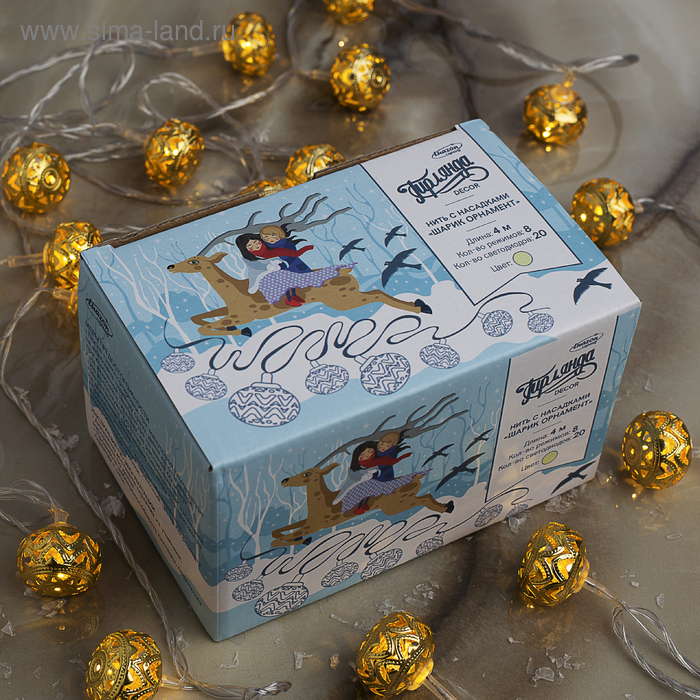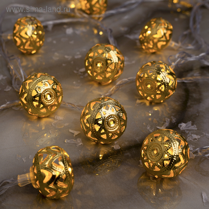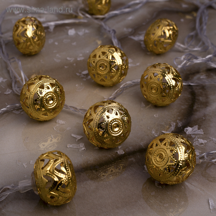 Гирлянда «Нить» 4 м с насадками «Шарик с орнаментом», IP20, прозрачная нить, 20 LED, свечение тёплое белое, 8 режимов, 220 В
