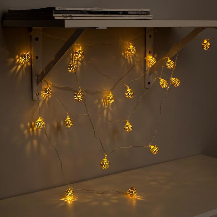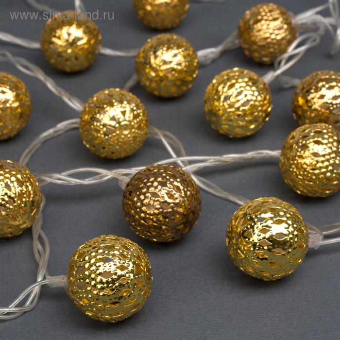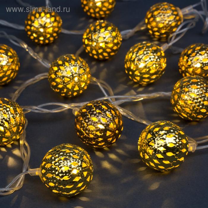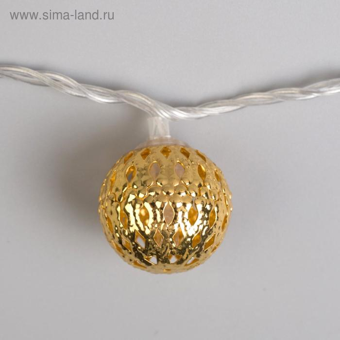 Гирлянда «Нить» 4 м с насадками «Шарик с узором», IP20, прозрачная нить, 20 LED, свечение тёплое белое, 8 режимов, 220 В