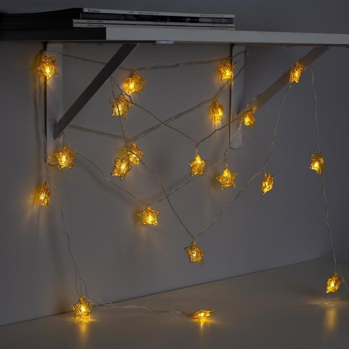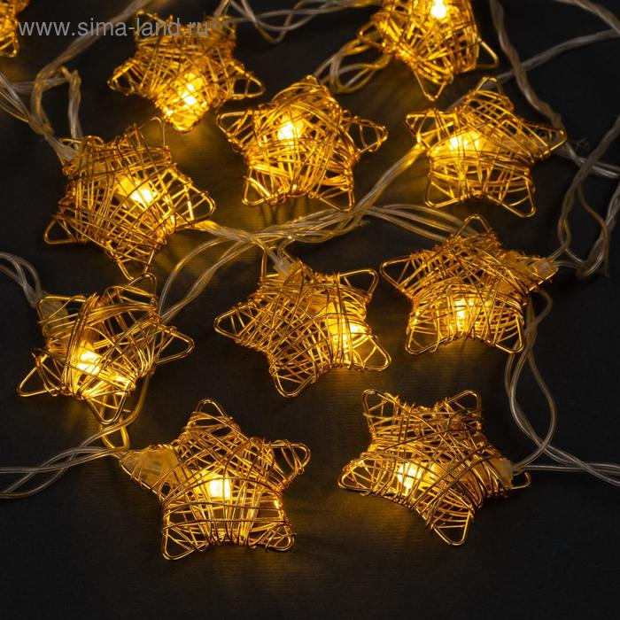 Гирлянда «Нить» 4 м с насадками «Звезда проволока», IP20, прозрачная нить, 20 LED, свечение тёплое белое, 8 режимов, 220 В