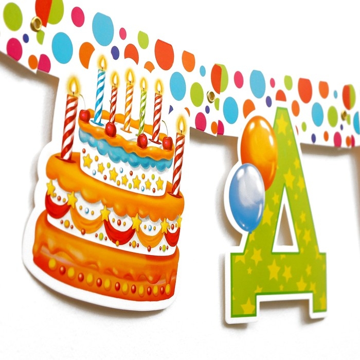 Гирлянда на ленте "С днем рождения", длина 160 см, Синий трактор