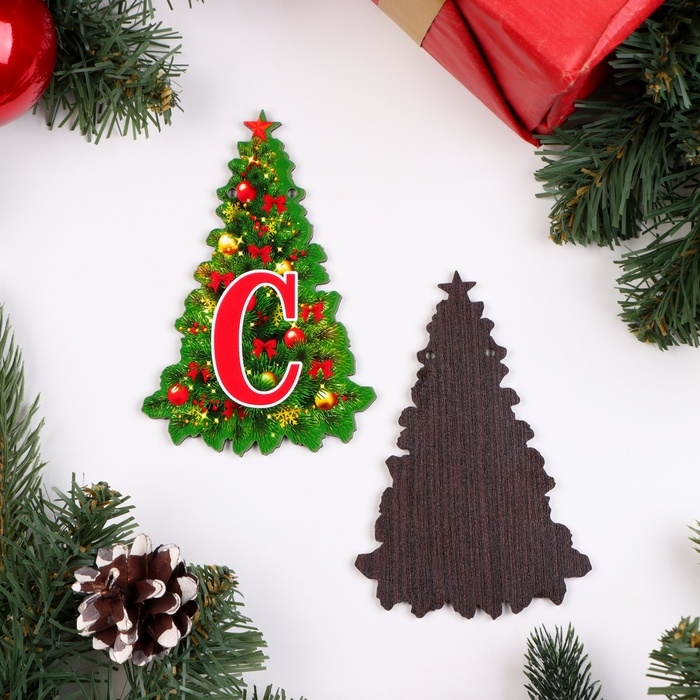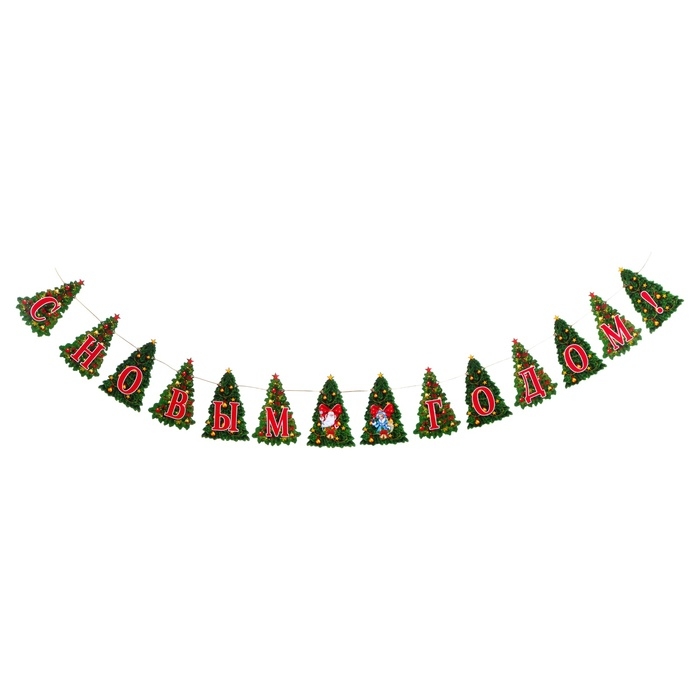 Гирлянда "С Новым Годом!" из 12 флажков-ёлочек, 12,5х8 см