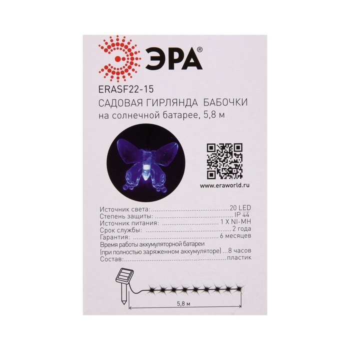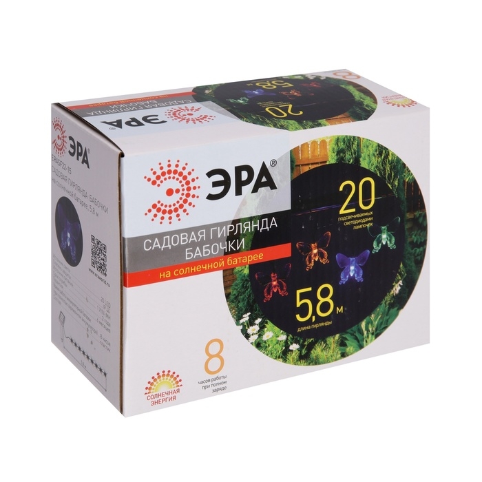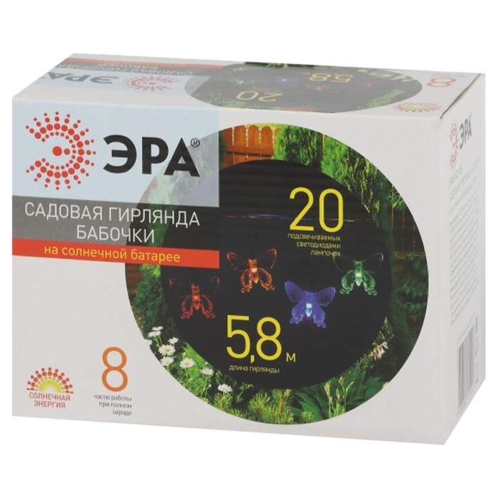 Гирлянда садовая Эра на солнечной батарее «Бабочки» LED, IP54