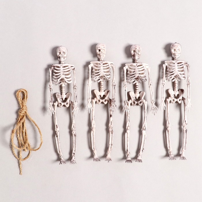 Гирлянда «Скелеты» поможет создать праздничную атмосферу Хэллоуина в вашем доме. Этот аксессуар представляет собой верёвочку, состоящую из фигурок скелетов, которые сочетают в себе мрачную эстетику и тематический стиль. Гирлянду можно легко разместить в любом помещении.
