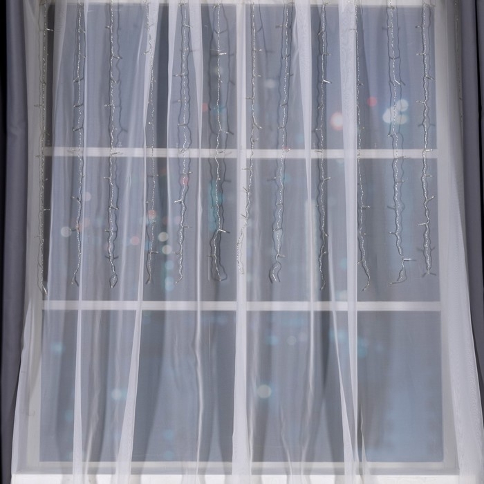 Гирлянда «Занавес» 2.5 × 0.65 м с насадками «Капли», IP20, прозрачная нить, 50 LED, свечение тёплое белое, 8 режимов, 220 В