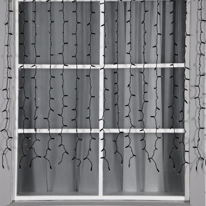Гирлянда «Занавес» 2 × 1.5 м, IP65, УМС, тёмная нить, 360 LED, свечение белое, 220 В