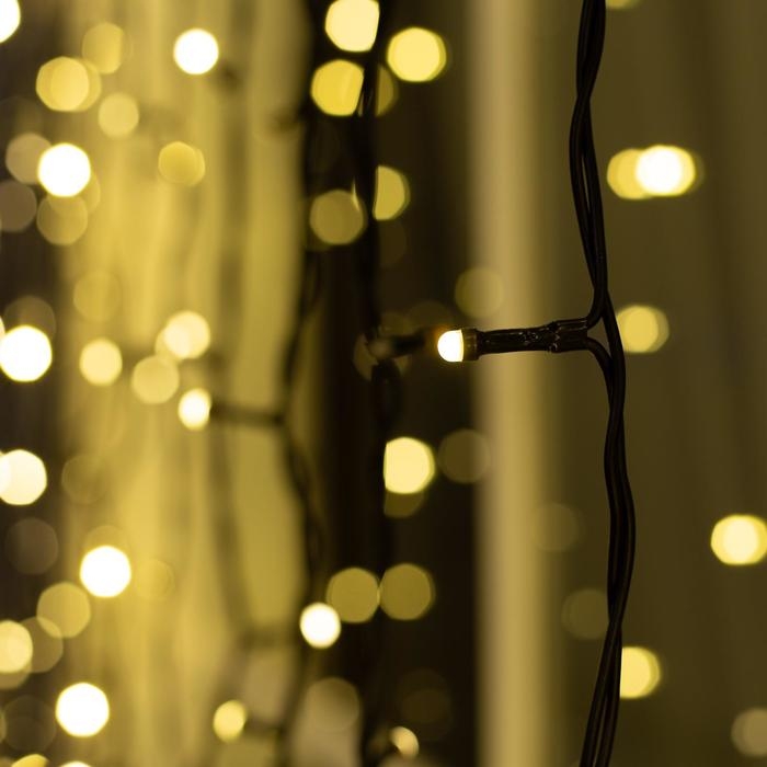 Гирлянда «Занавес» 2 × 3 м, IP44, УМС, тёмная нить, 760 LED, свечение тёплое белое, 220 В