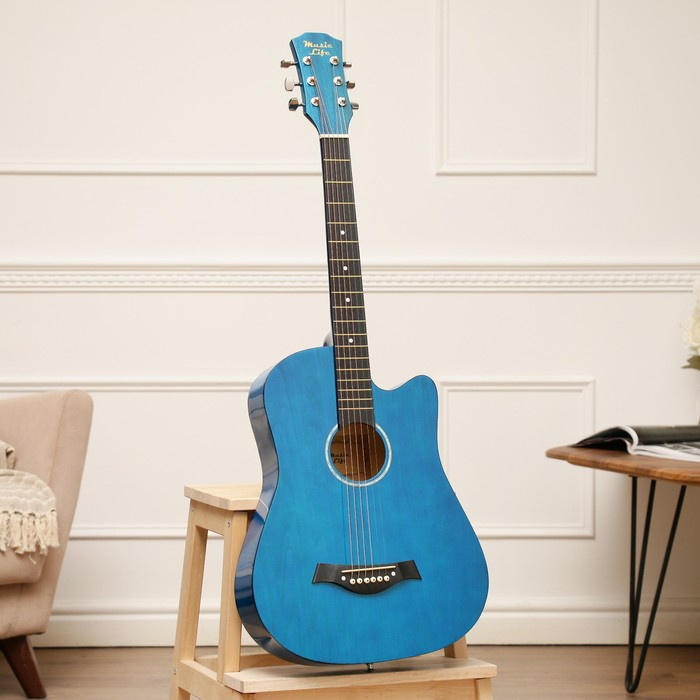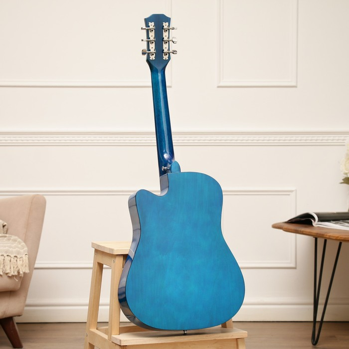 Гитара акустическая, цвет синий, 97см, с вырезом