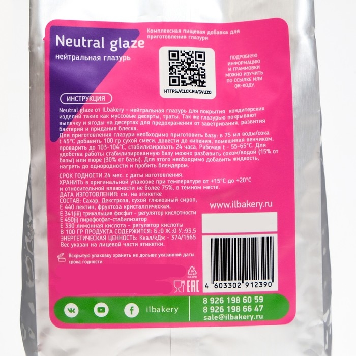Нейтральная глазурь используется для покрытия кондитерских изделий. Ее основная задача — придать сладостям яркий и необычный блеск. Можно применять вместе с ароматизаторами. Текстура вещества плотная и липкая. На десертах она держится плотно и не стекает.