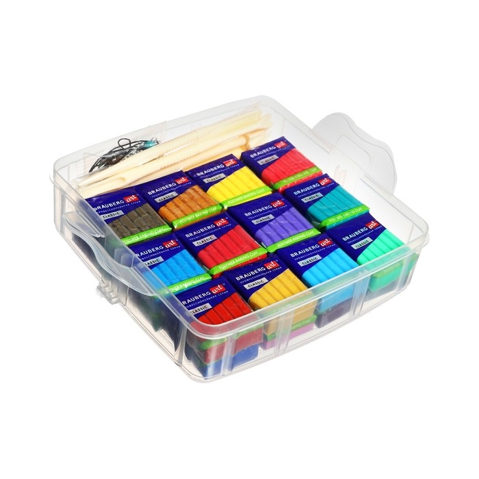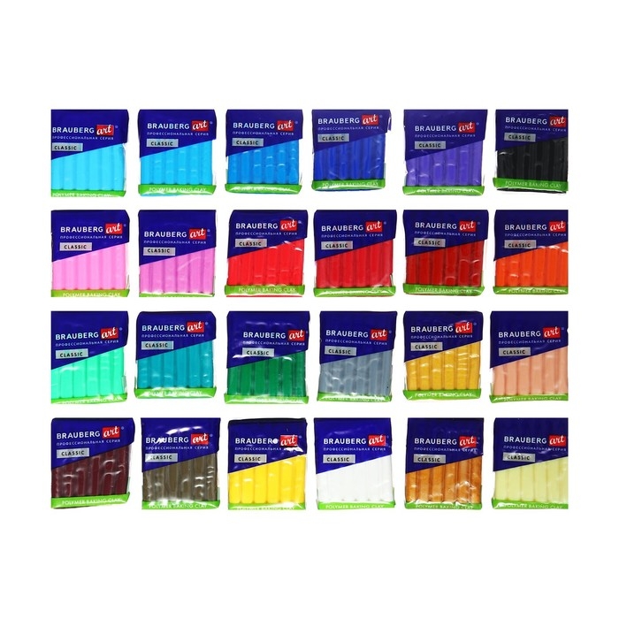Глина полимерная запекаемая BRAUBERG ART, 24 цвета x 20 г, в гофрокоробе, с аксессуарами