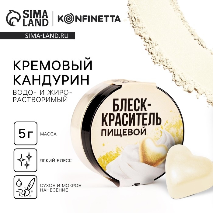 Глиттер кандурин «Кремовый» для десертов и напитков, водорастворимый, 5 г.