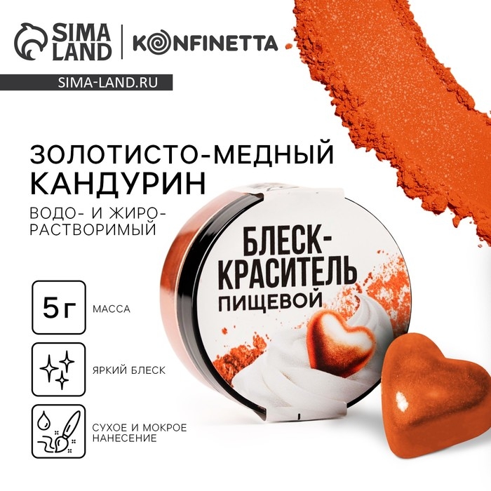 Глиттер кандурин «Золотисто-медный» для десертов и напитков, водорастворимый, 5 г.