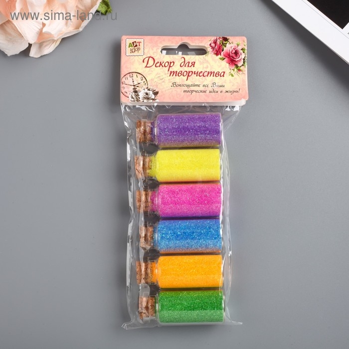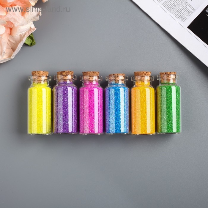 Глиттер в баночке с пробкой "Яркие хлопья" (набор 6 шт) МИКС 7 гр=1 бут. 13х5 см