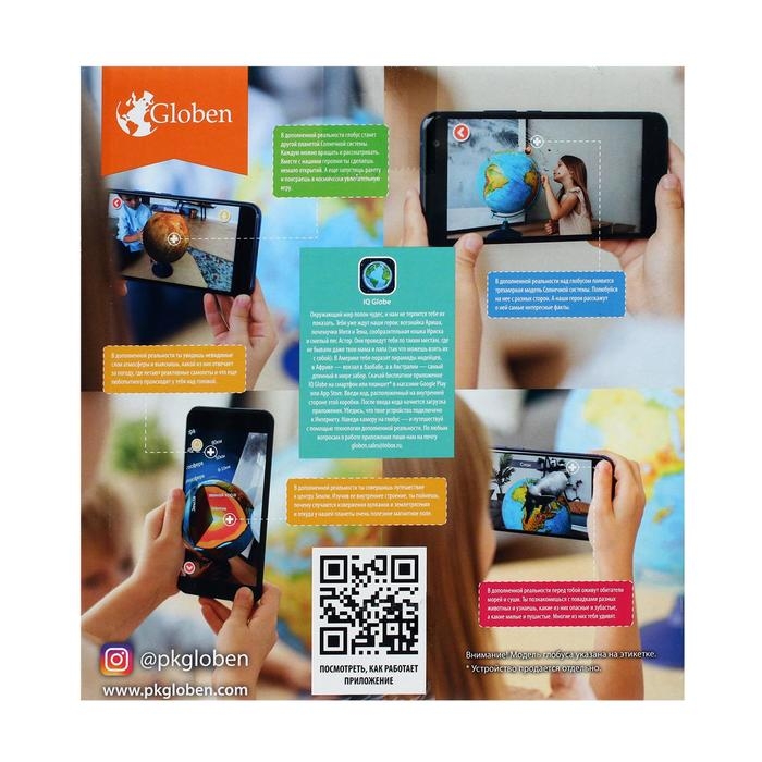 Глобус физико-политический "Глобен", интерактивный, диаметр 320 мм, рельефный, с подсветкой