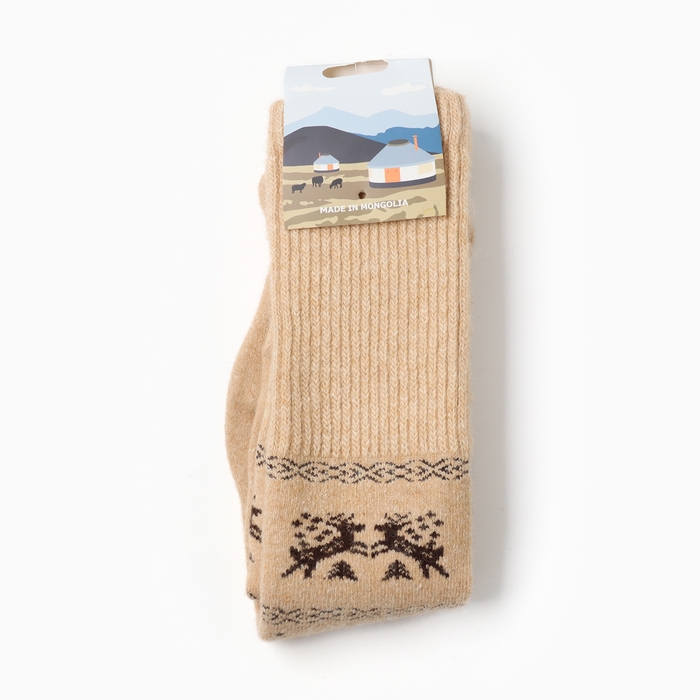 Гольфы детские из монгольской шерсти, цвет бежевый, 5-7 лет