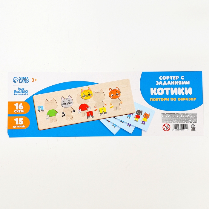 Головоломка деревянная для детей. Повтори по образцу «Котики»