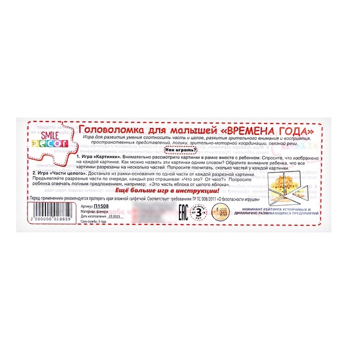Развивающая головоломка «Времена года» — это увлекательное путешествие по 4 сезонам, которое поможет вашему малышу
