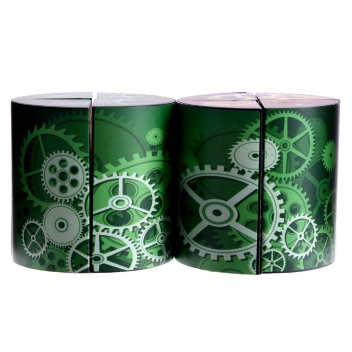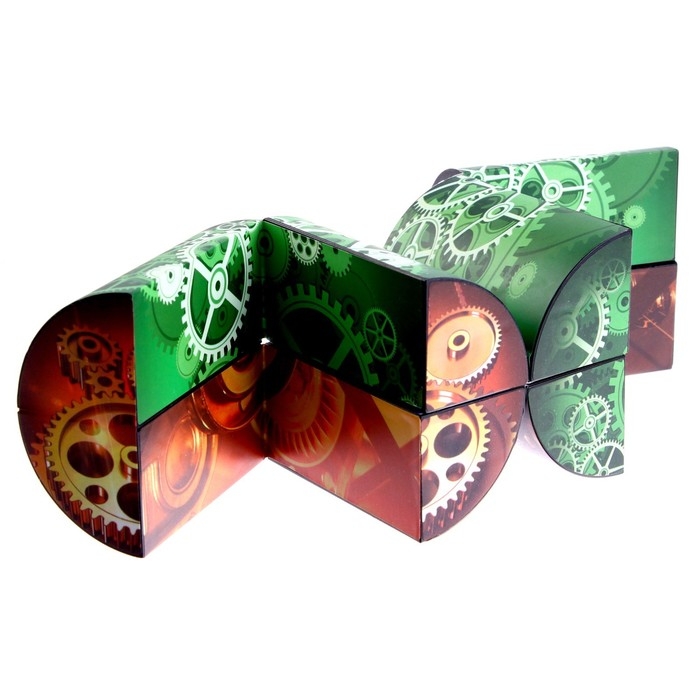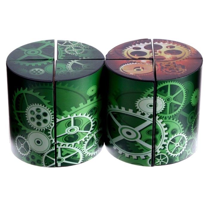 Головоломка выполнена в виде цилиндра, который состоит из 4 одинаковых деталей. Элементы окрашены с внешней и внутренней стороны в разные цвета.