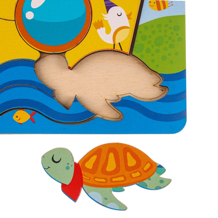 Детали с закруглёнными краями делает игрушку совершенно безопасной для малыша, а яркие персонажи и подсказки - интересной.