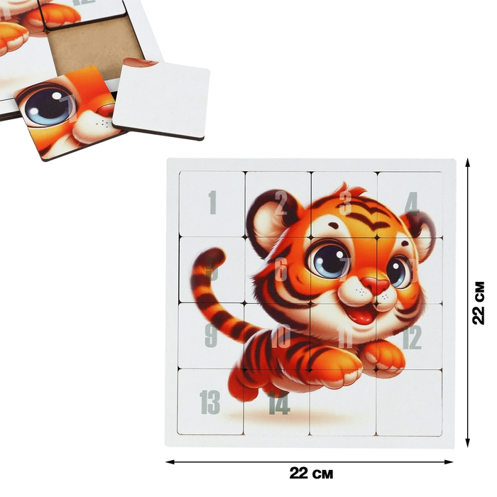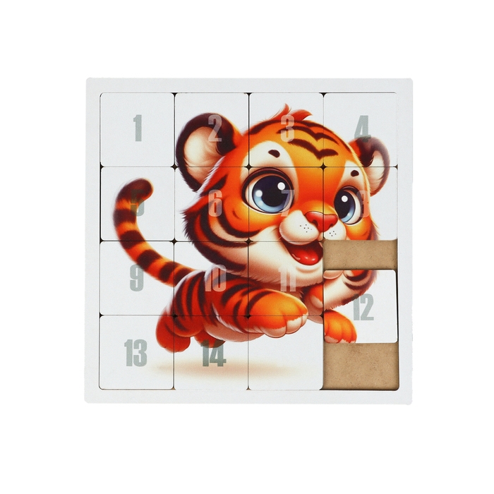 Головоломка "Пятнашки. Тигрёнок", логическая настольная игра, 22х22 см