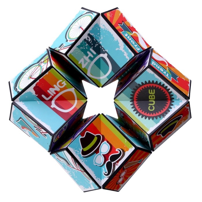 Головоломка сделана в виде гибких кубиков-оригами, они складываются во внешние стороны. Таким образом и составляется комбинация.