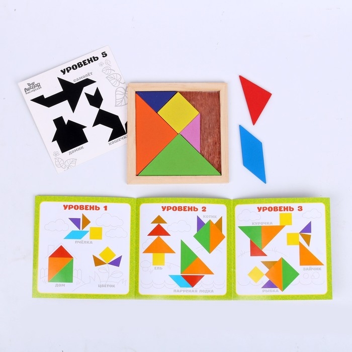 Танграм - одна из самых древних головоломок мира. Головоломка состоит из плоских геометрических фигур (танов). Суть игры: собрать определённые изображения по схеме, причём в рисунке должны участовать все таны.