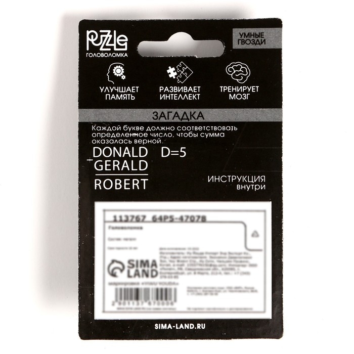 Головоломка «Умные гвозди» №14,на блистере