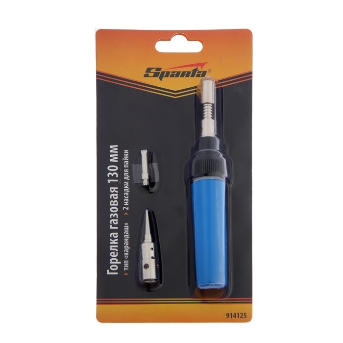 Горелка газовая Sparta 914125, тип "Карандаш", 2 насадки для пайки, 130 мм, бутан