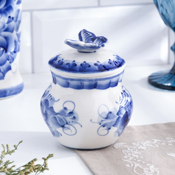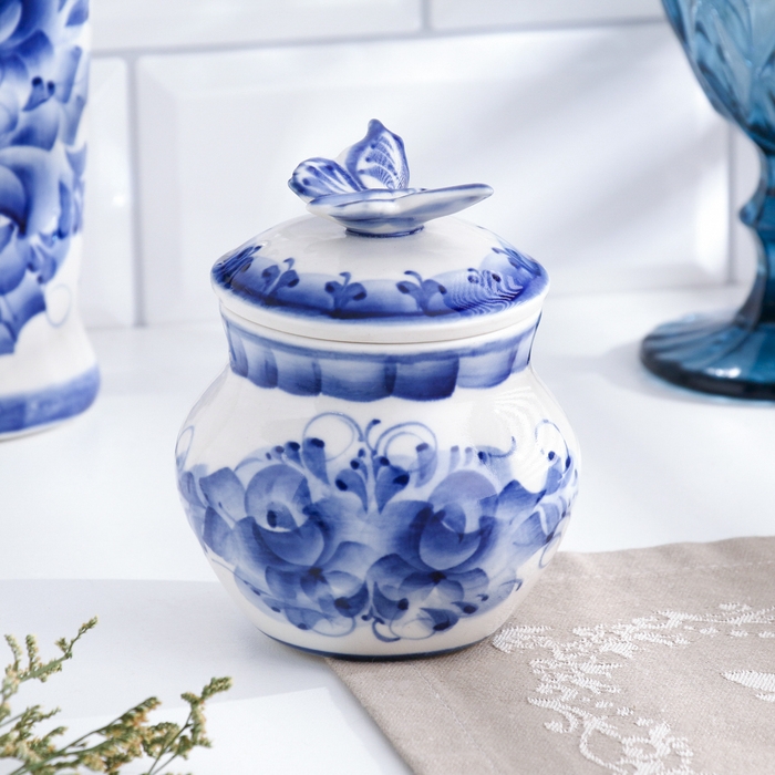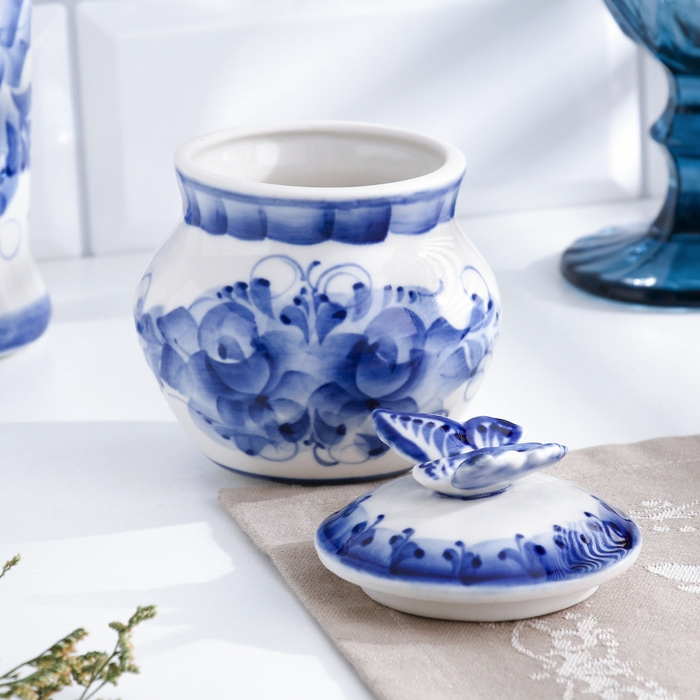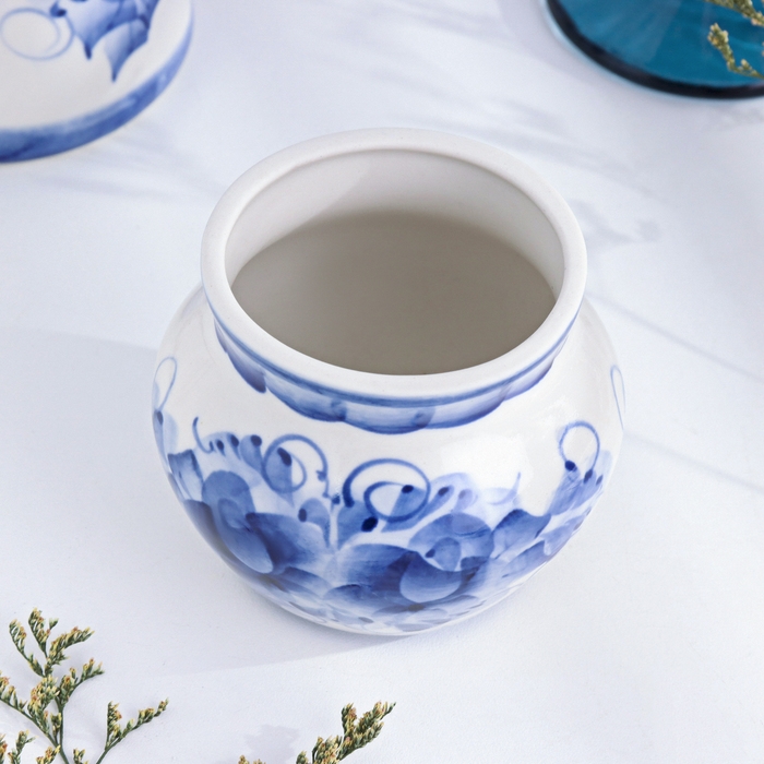 Горшочек "Цветы", для горячего и специй, 10 х 8 см, гжель