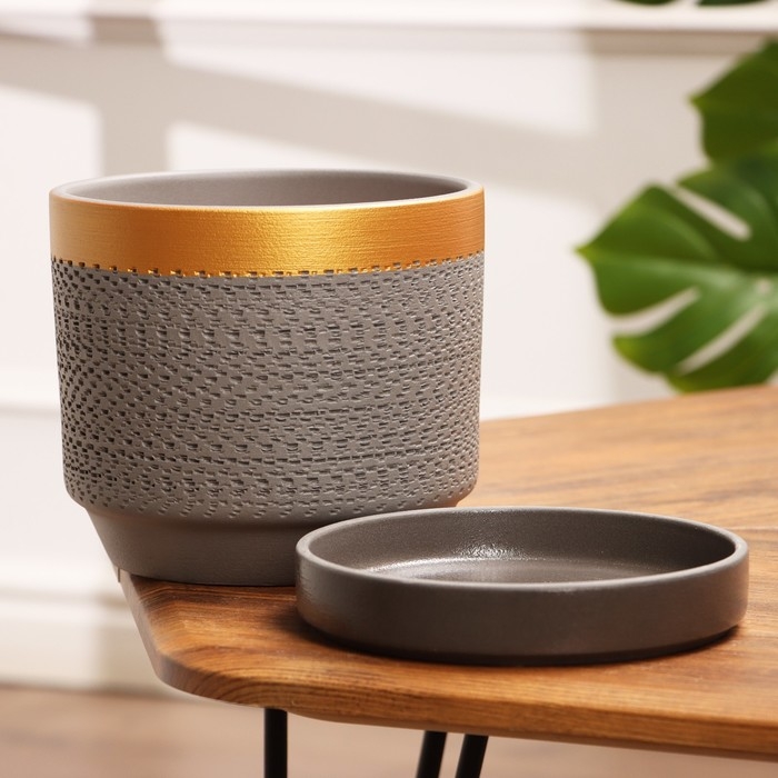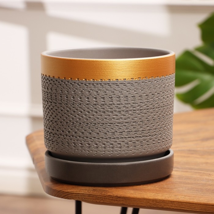 Горшок цветочный "Брюссель" серый золото цилиндр №3, 2,6 л