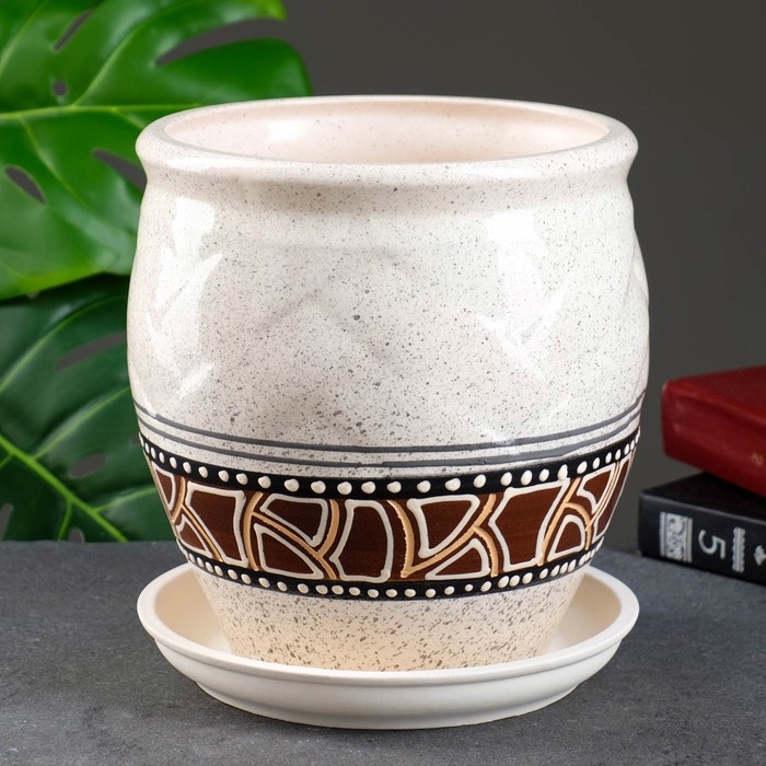 Горшок цветочный "Фикус №3" коричнево-белый 3л