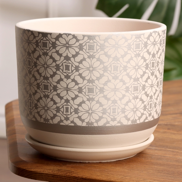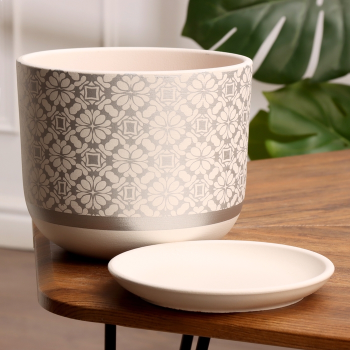 Горшок цветочный Гипюр белый бук №3, 2,9 л, d - 18,6 см