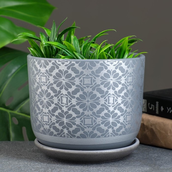 Горшок цветочный "Гипюр" серый, 1,73 л