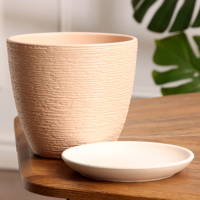 Горшок цветочный Гнездо бежевый крокус №2, 1,4 л, d - 14,9 см
