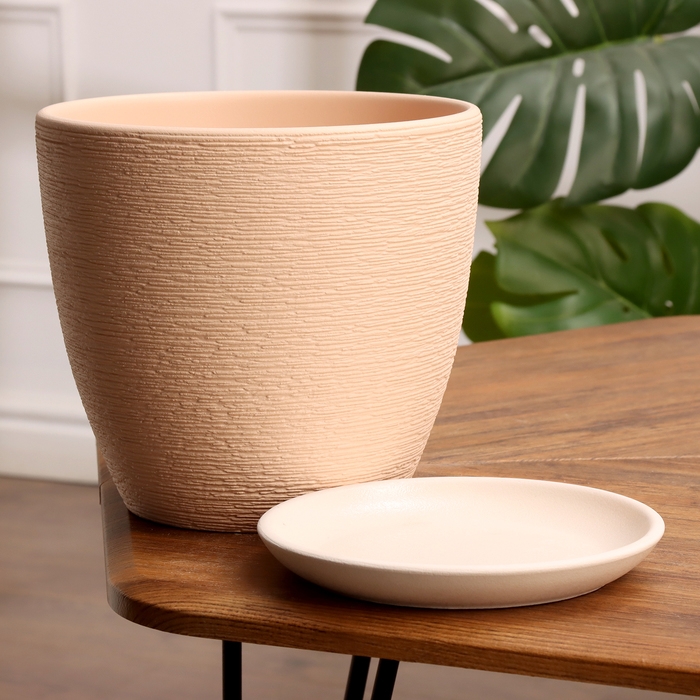 Горшок цветочный Гнездо бежевый крокус №4, 4,2 л, d - 20,8 см